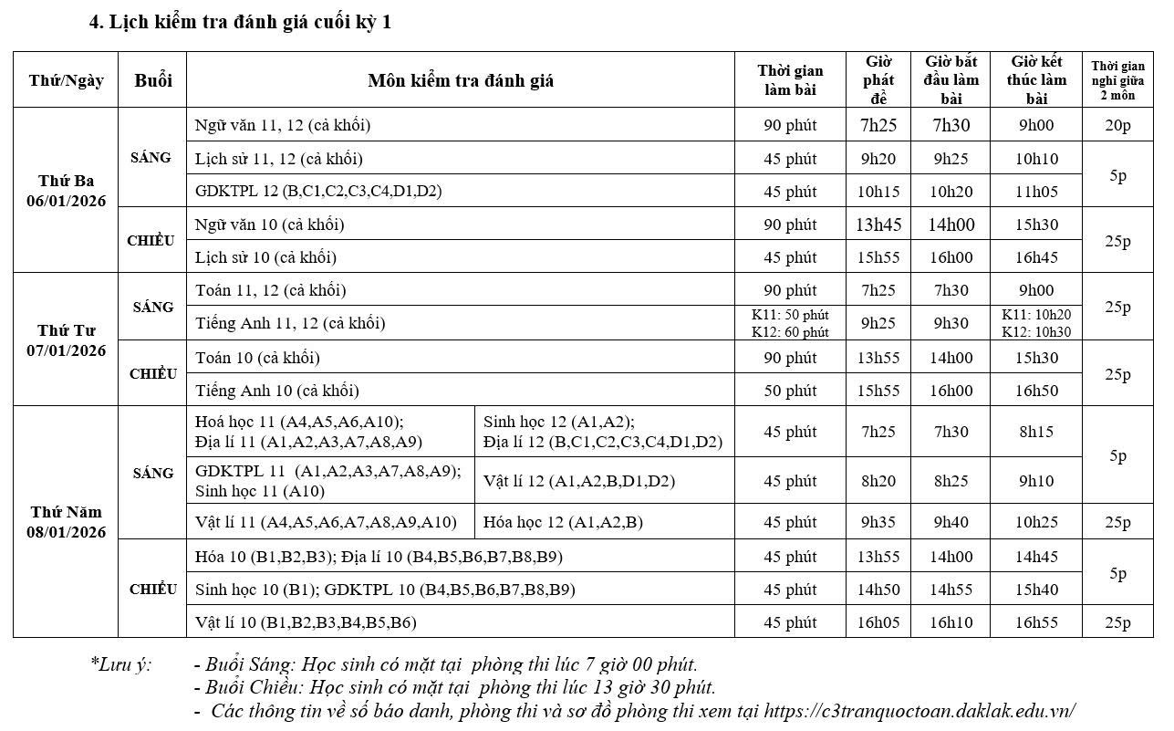 Thông tin kỳ Kiểm tra đánh giá cuối kỳ 1, năm học 2025 – 2026